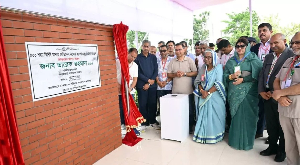 ভিত্তিপ্রস্তর স্থাপনের মাধ্যমে যশোর ৫০০ শয্যাবিশিষ্ট মেডিকেল কলেজ হাসপাতালের নির্মাণকাজের উদ্বোধন করেছেন প্রধানমন্ত্রী তারেক রহমান।